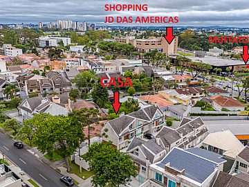 -Localizado no Jardim das Américas, um dos bairros mais valorizados de Curitiba, este sobrado fica próximo a: Shopping Jardim das Américas; Supermercados (Super Muffato); Escolas e faculdades; Comércio variado: farmácias, lojas, padarias e restaurantes; Fácil acesso ao Aeroporto Afonso Pena e vias rápidas da cidade; Excelentes praças e áreas verdes próximas